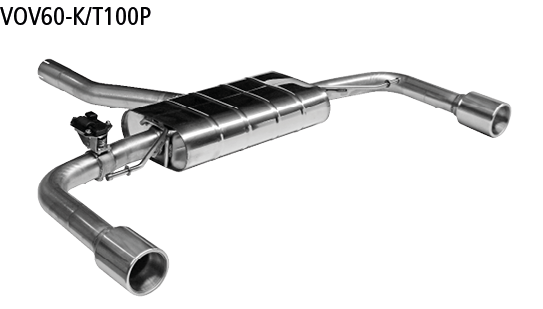 Silencieux arrière avec pot d’échappement simple 1 x Ø 100 mm LH + RH, avec insert, avec lèvre, avec soupape d’échappement